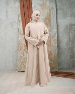 2. Abaya dan one set Wanita Ranaya – List rawis / ujung serat terbuka dibagian depan dan bagian tangan, cuttingan loose-fit dengan tampilan minimalis elegan