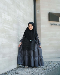 Di design khusus, karena terdapat aksen ruffle di bagian tangan atas dan karet untuk memudahkan penggunaan serta terdapat hidden pocket di bagian kanan dress